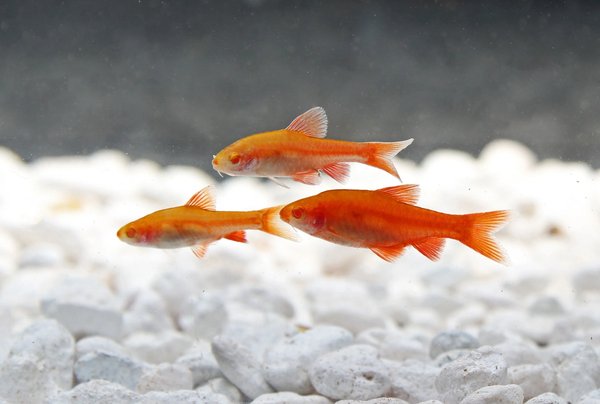 Albino cherry barbs (Puntius titteya) are a stunning and peaceful addition to any community aquarium, displaying a soft pinkish-white body with a subtle golden sheen and striking red eyes. Their gentle nature and active yet non-aggressive behavior make them ideal tankmates for other peaceful fish species. These social fish thrive in groups of at least six, which helps them feel secure and encourages their natural schooling behavior. To keep them healthy and vibrant, provide a well-planted aquarium with open swimming areas and stable water parameters: a temperature range of 72-79°F (22-26°C), a pH of 6.0-7.5, and soft to moderately hard water (5-15 dGH). Albino cherry barbs are undemanding when it comes to diet, readily accepting high-quality flakes, pellets, and occasional live or frozen foods such as brine shrimp and bloodworms. Their playful yet peaceful demeanor makes them an excellent choice for community tanks, where they add both color and lively activity without disrupting more timid species. With their shimmering, delicate coloration and friendly nature, albino cherry barbs bring charm and harmony to any well-maintained freshwater aquarium.